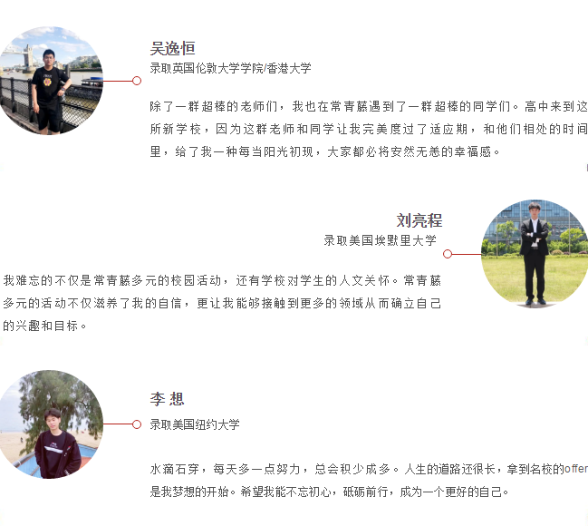 常青藤国际部毕业生全部被美国、英国、加拿大、澳大利亚、香港知名高校录取!张家港本地出国留学无数纪录均由常青藤国际部创造和保持,在整个苏州大市出国留学录取成果评比中,常青藤国际部亦名列前茅。