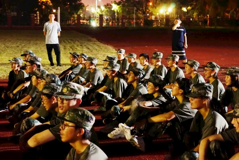 伴随夜幕的降临,常青藤的操场里却并未宁静。军训的同学们正在操场上进行愉快的学军歌、对军歌活动。夜色下,草长花香浓,空气中弥漫着夏夜独有的草和泥土的气息。这是一种象征,象征着常青藤学子们脚踏实地的前进精神。