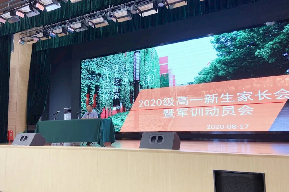 8月17日下午,高一年级的家长们相聚国际部报告厅,参加2020级高一新生家长会暨军训动员会。