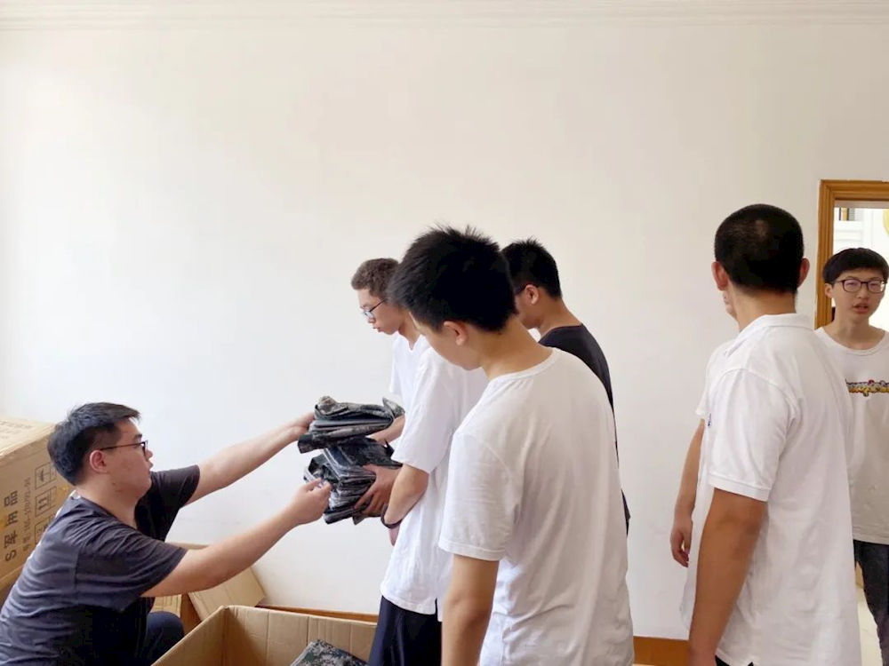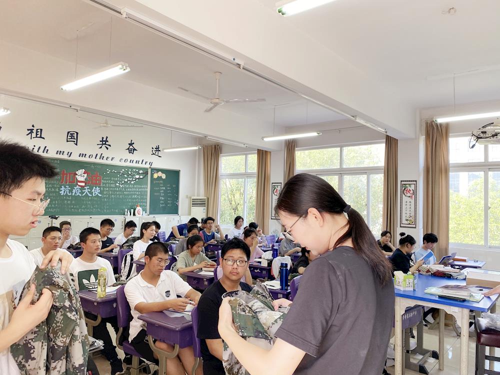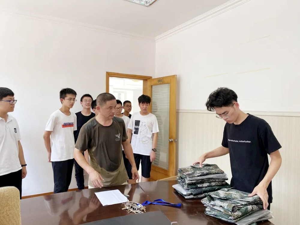 与此同时,高一萌新们已经在19、20届的学长志愿者们的带领下,领取了军训所需的服装。他们意气昂扬,整装待发,充满斗志。学长们见到他们的模样,似乎也会想起三年前的自己。