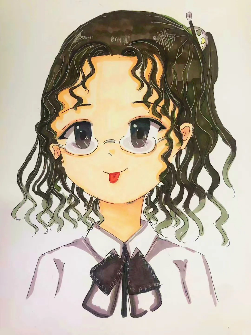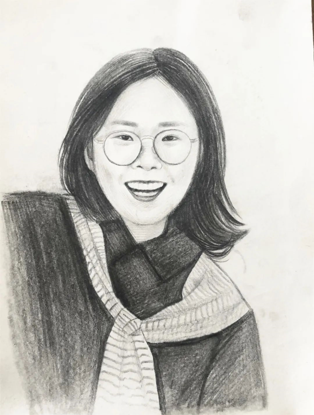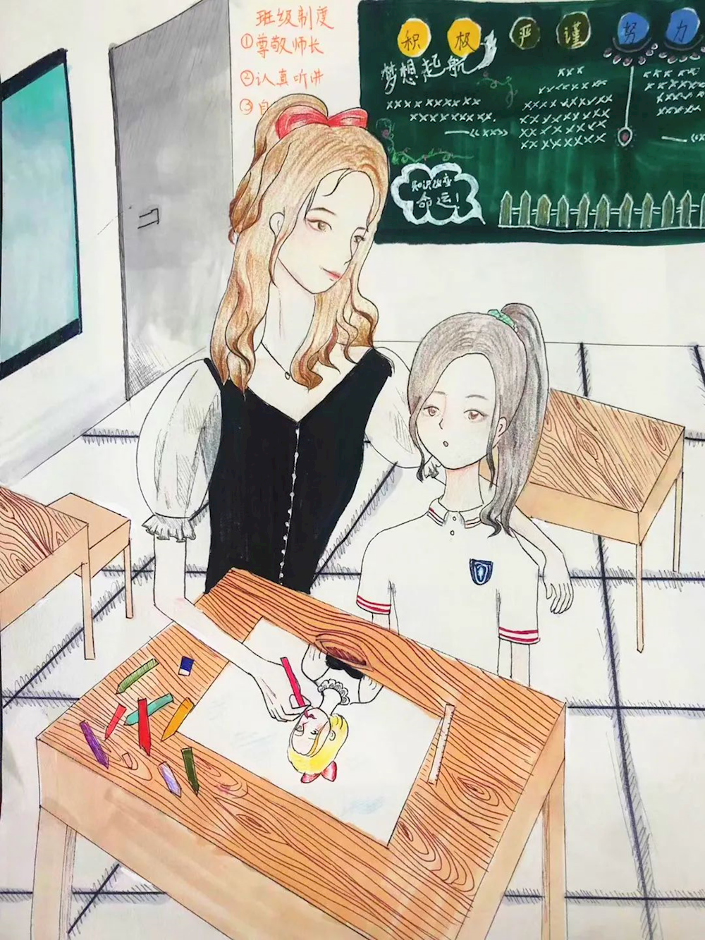 画中胡老师的一颦一笑,慈爱温柔的眼神,是一笔一画勾勒,每一笔中都充斥着我对胡老师的爱意与敬意。但那略显黯淡的眼窝和那饱经风霜的皱纹,让我无比感动与酸楚。